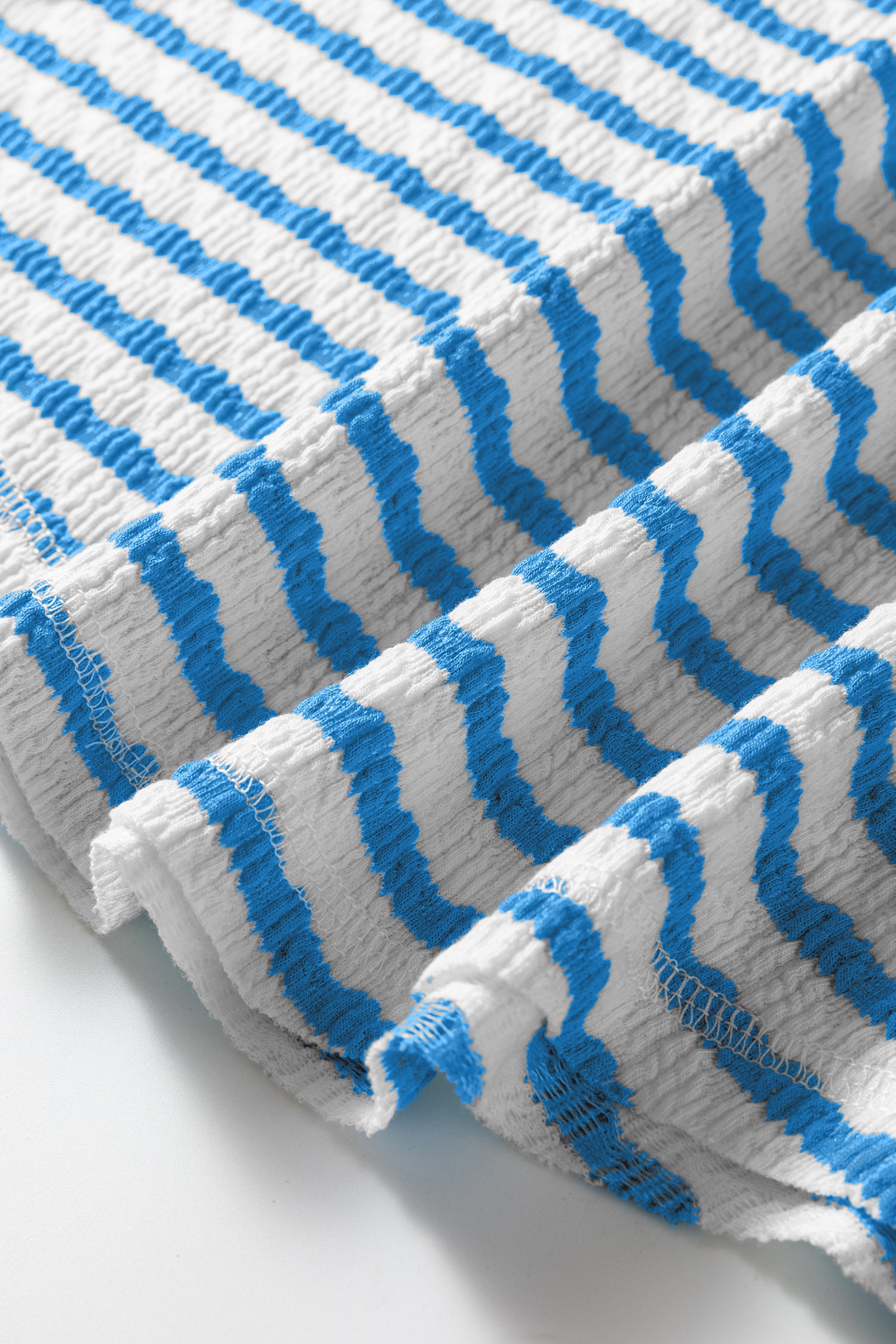 Blue Stripe Textured Short Sleeve Patchwork T Shirt