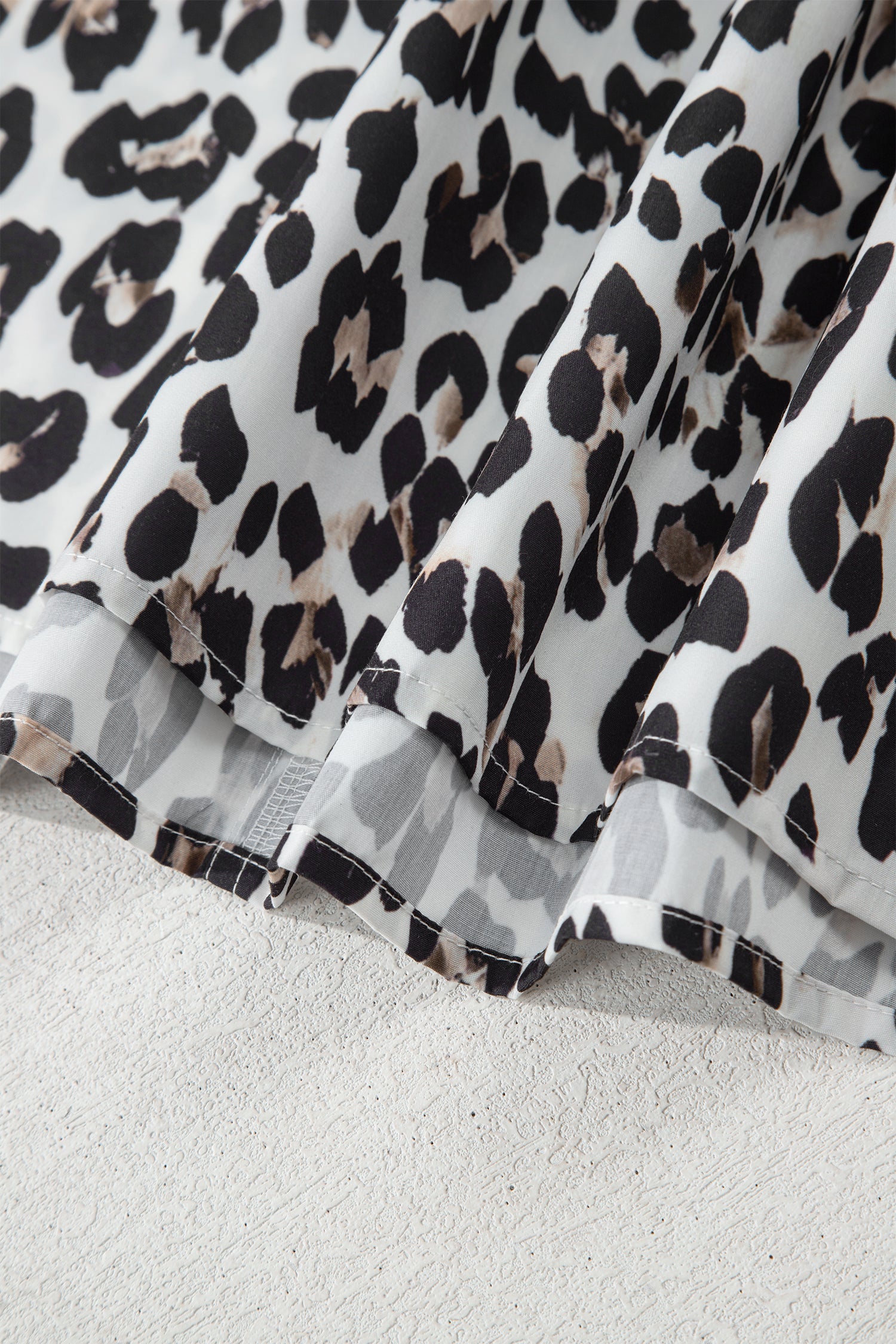 Multicolour Leopard Print Contrast Trim Button Split Neck Plus Long Sleeve Top