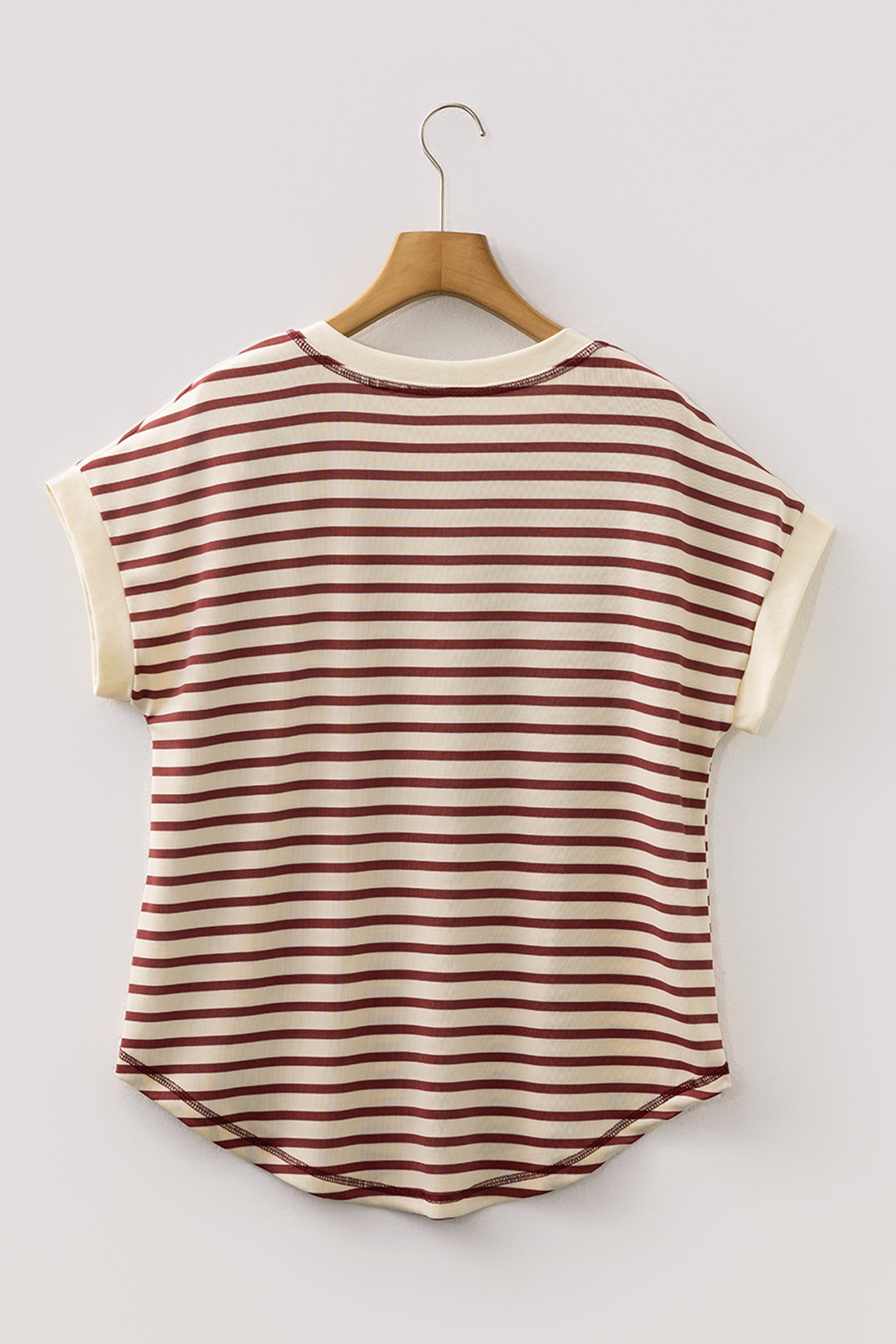 - Casual striped T-shirt with a classic round neck and half-button detail.
