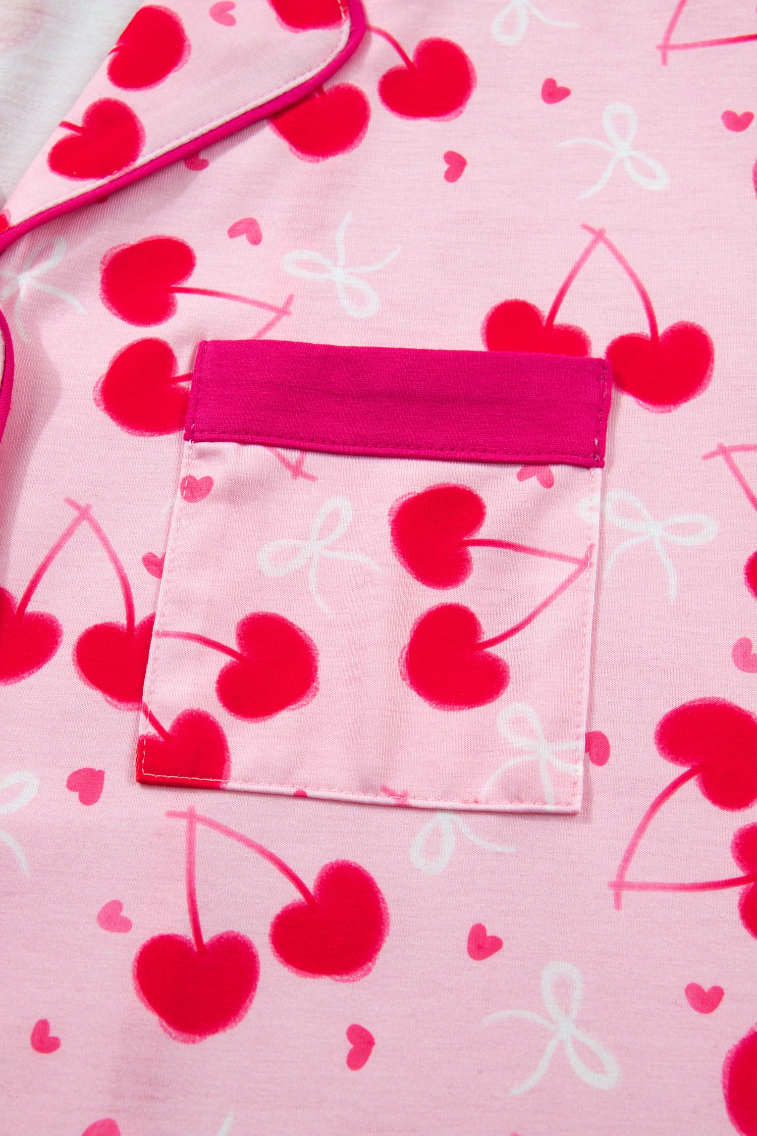 Rose Cherry Bow Mixed Print Scalloped Pajama Set