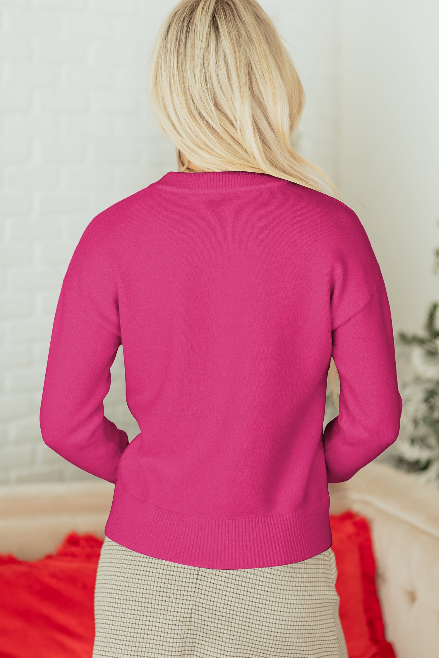 Rose Red Sequined Bow Graphic Christmas Holiday Sweater
