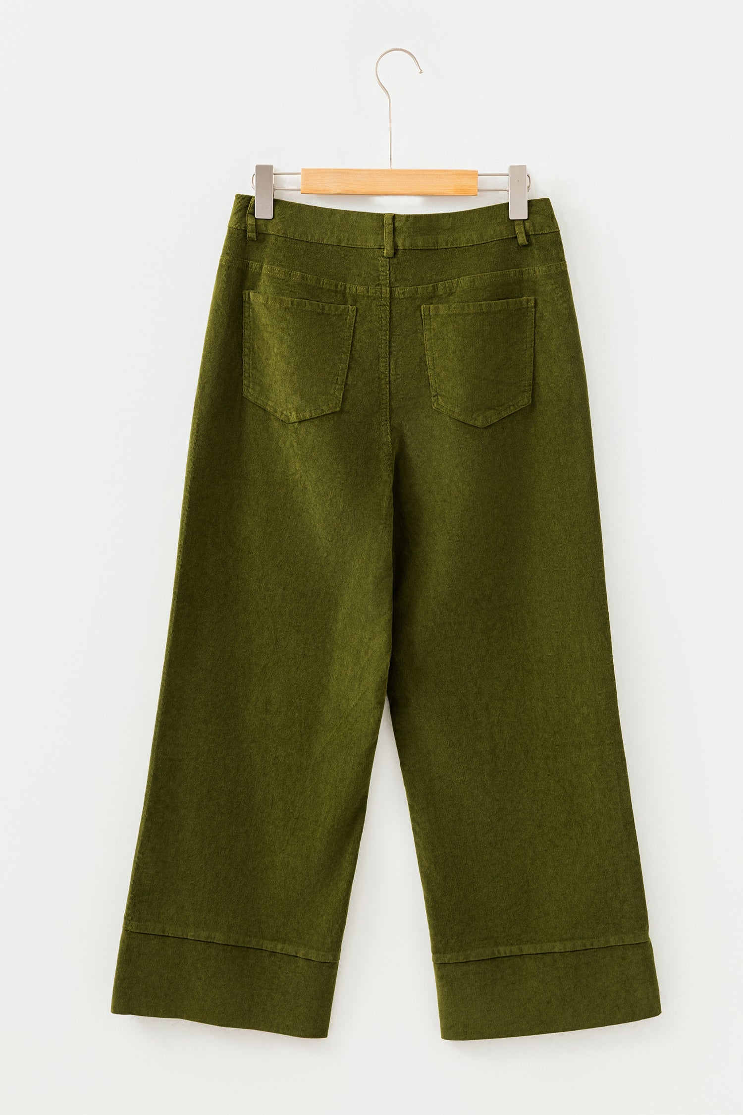 Vineyard Green Corduroy Solid Color High Waist Wide Leg Pants